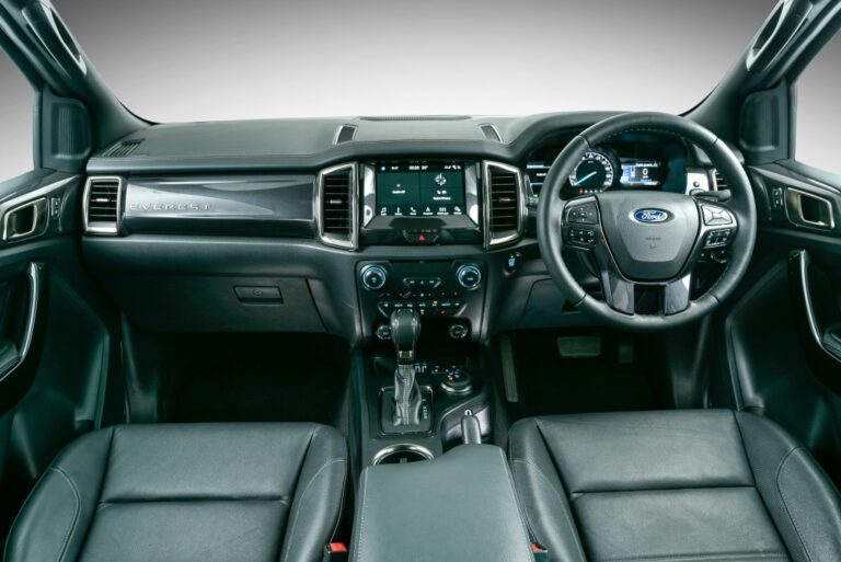 Wewnątrz, Everest oferował przestrzeń dla trzech rzędów siedzeń. Z przodu znajdowały się dwa fotele, w środkowym rzędzie trzy, a w ostatnim dwa. Producent poprawił funkcje wnętrza, dodając nawiewy w suficie oraz gniazdko 230 V za konsolą centralną. Tak jak Ranger, Everest miał 8-calowy ekran dotykowy systemu informacyjnego SYNC umieszczony na szczycie centralnej sekcji oraz dwa wyświetlacze cyfrowe w panelu instrumentów, które flankiowały analogowy prędkościomierz.