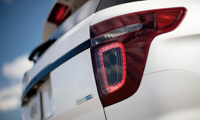 Z tyłu, lampy stopu LED świecą z klejnotowego klosza tylnej lampy. Nazwa Explorer projekcje z aplikacji na tylną klapę.