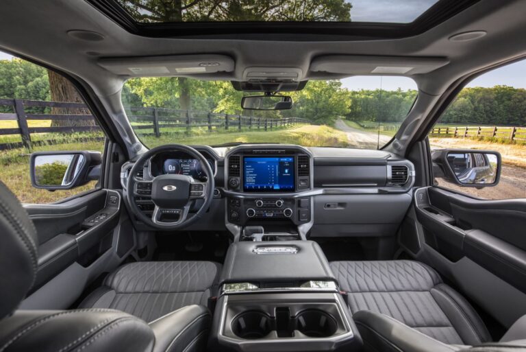 F-150 wprowadza całkowicie nowy 12-calowy ekran centralny – standardowo w modelach wysokiej serii XLT i wyżej – który pozwala klientom na podział ekranu i jednoczesne kontrolowanie wielu funkcji, w tym nawigacji, muzyki lub funkcji ciężarówki. Design w orientacji poziomej równoważy wymagania dotyczące dostępu do technologii i większą wygodę fizycznych przycisków. 8-calowy ekran dotykowy, standardowy w modelach XL i XLT standard oraz średniej serii, oznacza, że każdy klient ma dostęp do funkcjonalności ekranu dotykowego oraz lepszą widoczność z tyłu. Oba ekrany oferują dostęp do nowego cyfrowego podręcznika użytkownika, który może pomóc każdemu klientowi łatwiej znaleźć potrzebne informacje, w tym filmy instruktażowe dla dodatkowego wyjaśnienia.
