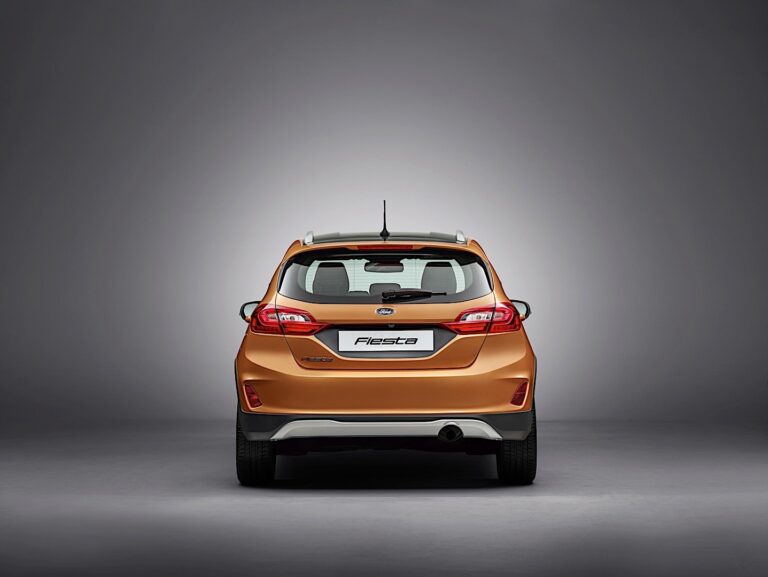 Ford Fiesta Active dodatkowo wyróżnia się podwyższonym profilem zawieszenia, z ciemnymi osłonami przechodzącymi od krawędzi zderzaka, przez nadkola i boczny profil do tyłu. Wzór kratki w kształcie heksagonu oraz ciemny element w okolicy tablicy rejestracyjnej tylnej klapy, dach malowany kontrastowo i belki dachowe, wszystko to przyczynia się do bardziej surowego, wszechstronnego odczucia.