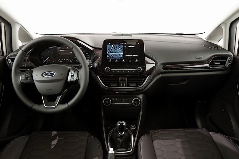 Fiesta jest także pierwszym samochodem Forda, który oferuje premium system audio B&O PLAY, a po raz pierwszy dostępny jest otwierany panoramiczny dach szklany. Zaawansowany system komunikacji i rozrywki SYNC 3 wspierany jest przez unoszące się ekrany dotykowe o wysokiej rozdzielczości do 8 cali, a przestronne i ergonomiczne wnętrze charakteryzuje się prawie 50% redukcją przycisków na konsoli centralnej, aby stworzyć bardziej intuicyjne środowisko.