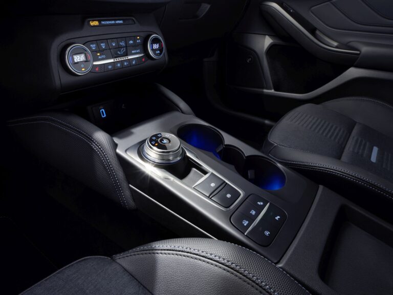 Komfort jest kluczowy dla bardziej wyrafinowanego i luksusowego doświadczenia pasażerów całkowicie nowego Focusa. Pasażerowie przednich siedzeń będą cieszyć się przestronnością barków wynoszącą 1,421 milimetra, a położenie panelu instrumentów jest zoptymalizowane dla większej przestrzeni. Elektryczna hamulca postojowego – standard w modelach z ośmiobiegową automatyczną skrzynią biegów i w modelach wyższych z manualną skrzynią – oraz pokrętło zmiany biegów również zwalniają więcej miejsca dla kierowcy i pasażera z przodu. Węższa konsola centralna – umożliwiająca przesunięcie przełączników i kontrole do ekranu dotykowego – ma miękkie poduszki na kolana dla większego komfortu.