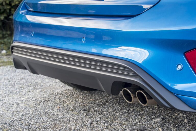Bardziej agresywnie stylizowany tylny dyfuzor oraz większy funkcjonalny spojler dachowy Forda Focus ST-Line; bardziej otwarte przednie otwory zaprojektowane z myślą o wydajności i ujawniające komponenty silnika za nimi; oraz odważne dolne elementy skrzydeł ST-Line kierujące powietrze do otworów kurtyny powietrznej