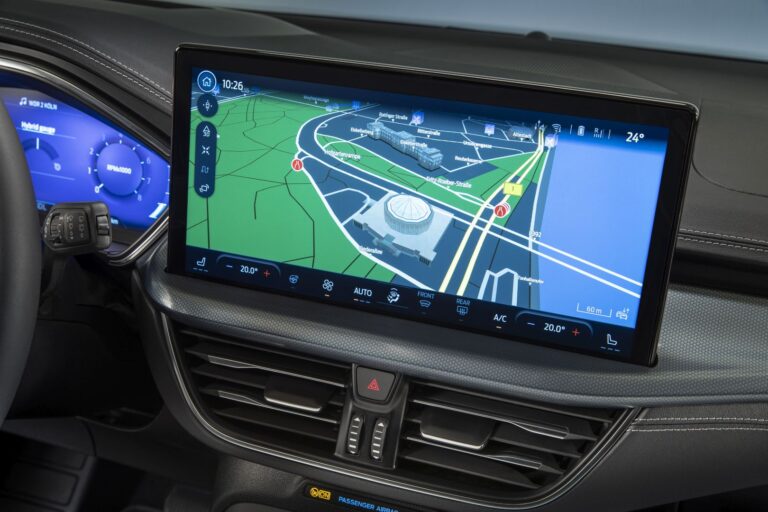 SYNC 4 wspierany jest przez zupełnie nowy, 13.2-calowy ekran dotykowy, z intuicyjnym interfejsem, który oznacza, że kierowcy nigdy nie są dalej niż o dotyk lub dwa od jakiejkolwiek aplikacji, informacji lub kontroli, których potrzebują. Nowy ekran dotykowy wprowadza również sterowanie funkcjami takimi jak ogrzewanie i wentylacja, które wcześniej były uruchamiane przy użyciu fizycznych przycisków, co prowadzi do czystszej i mniej zagraconej konsoli centralnej. System dostarcza także bezprzewodowej kompatybilności z Apple CarPlay i Android AutoTM, co umożliwia bezproblemową integrację między funkcjami smartfona a SYNC 4.