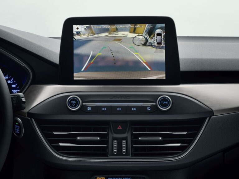 Tylna kamera szerokokątna, która oferuje niemal 180-stopniowy widok z tyłu pojazdu, aby poprawić widoczność podczas wyjeżdżania z miejsc parkingowych czy podjazdów