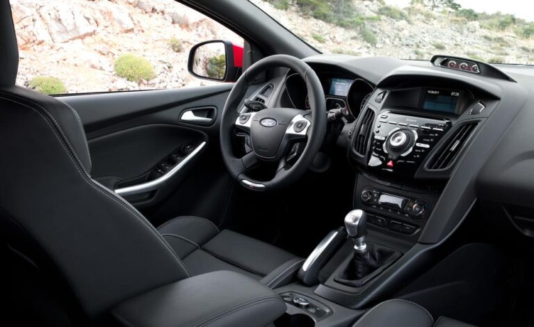 Wnętrze ma charakterystyczne wykończenie ST w ciemnym otoczeniu, z czarnym podsufitką, specjalnie zaprojektowaną kierownicą oraz gałką zmiany biegów z logo ST, a także metalowymi pedałami wyścigowymi.