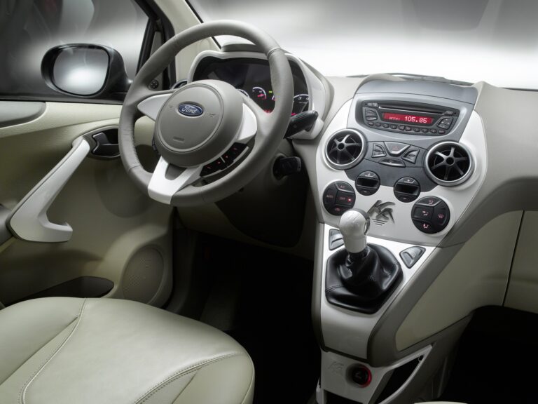 Zespół wskaźników ma cztery główne tarcze z jasnymi, czytelnymi grafikami oraz komputer pokładowy umieszczony centralnie w wyświetlaczu. Mniejsze przełączniki są ergonomicznie umiejscowione na konsoli środkowej, z radiem-CD na najwyższej pozycji, co pozwala na łatwe dostosowanie z minimalnym rozpraszaniem uwagi od drogi. Ta staranna dbałość o szczegóły sprawia, że nowy Ka jest prosty i przyjemny w prowadzeniu.