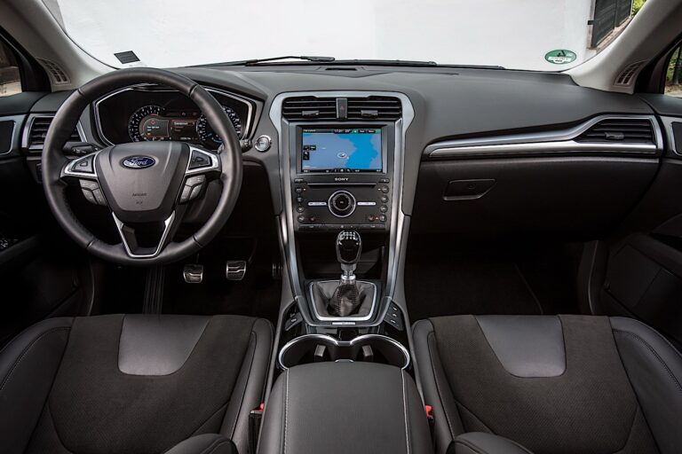 Wewnątrz projektanci Forda włożyli wiele pracy, aby stworzyć najlepsze wnętrze, jakie kiedykolwiek powstało w Mondeo. Na centralnej konsoli umieszczono jednostkę infotainment z systemem łączności SYNC 2. Fotele z bocznymi podparciami obiecywały dobrą stabilność podczas szybkiego pokonywania zakrętów. Mondeo już nie było tylko kolejnym średniej wielkości sedanem na rynku; było sportowym sedanem i pokazywało to. Z tyłu dzielona kanapa umożliwiała zwiększenie pojemności bagażnika z 525 litrów (18.5 cu-ft) do 1,630 litrów (57.6 cu-ft).
