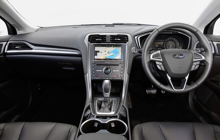 Wnętrze Mondeo wita kierowców cyfrowym analogowym zestawem wskaźników, podczas gdy elegancki, otaczający projekt konsoli centralnej zapewnia sportowe wrażenie.