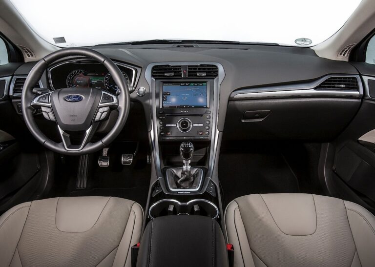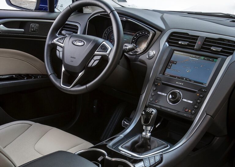 Wnętrze Mondeo wyposażone jest w system multimedialny Sync 2, który działa dobrze zarówno z Android Auto, jak i Apple CarPlay. Kierowcy witani są przez wyświetlacz LCD oraz dwa wskaźniki lub opcjonalny 10-calowy cyfrowo-analogowy zestaw przyrządów.