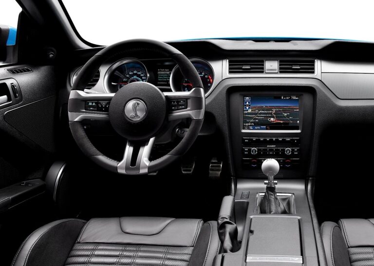 Shelby GT500 z 2013 roku zawiera również ulepszone funkcje w klastrze, aby dostarczyć kierowcom jeszcze więcej informacji. Prędkościomierz jest teraz ustawiony na 220 mph, a funkcja over-rev pozwala silnikowi działać do 7,000 obr./min przez osiem sekund przed powrotem do 6,250 obr./min.