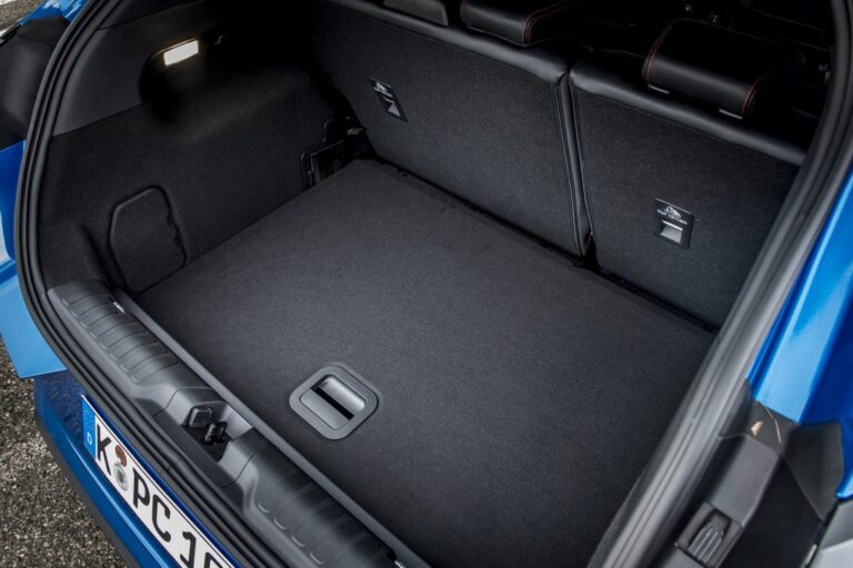 W wysokiej pozycji obszar pod zwiększa się, aby stworzyć poziomą podłogę bagażnika, która jest na równi ze złożoną tylnią kanapą