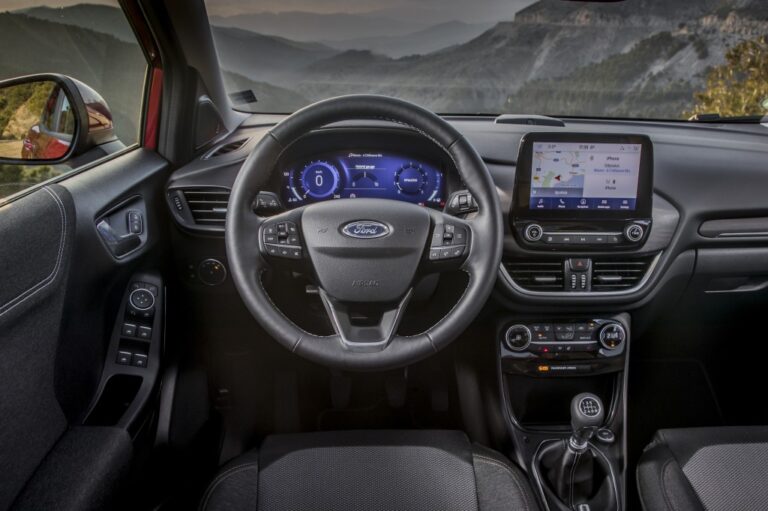 Odważne elementy dolnego skrzydła ST-Line kierują powietrze do wlotów zasłony powietrznej. Wewnątrz Puma ST-Line posiada koło kierownicy o płaskim dnie oraz charakterystyczne czerwone przeszycia – dostępne również na opcjonalnych fotelach częściowo skórzanych. Aluminiowe pedały, aluminiowa dźwignia zmiany biegów i charakterystyczny czarny sufit dodatkowo podkreślają sportowy charakter.
