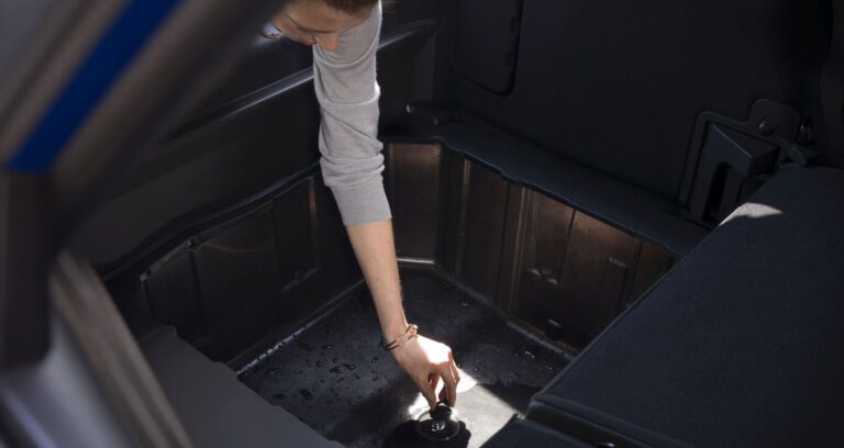 Po usunięciu podłoga może być bezpiecznie przechowywana w pozycji pionowej wzdłuż tylnej części siedzeń drugiego rzędu, aby osiągnąć pełną pojemność 456 litrów