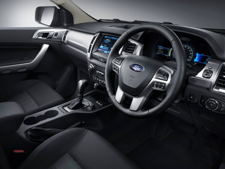 „Wnętrze nowego Ranger’a jest eleganckie i nowoczesne, z silnym akcentem technicznym,” powiedział Dewitt. „Podkreślając projekt, wybraliśmy materiały, które są stylowe i atrakcyjne, jednocześnie wystarczająco trwałe, aby wytrzymać surowe warunki pracy. Wnętrze może wyglądać bardziej jak w samochodzie osobowym, ale jest tak samo praktyczne jak zawsze.”