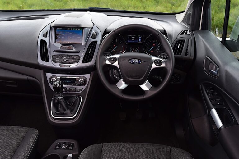 Wnętrze samochodu zostało zaprojektowane na wzór standardowego auta, z deską rozdzielczą przystosowaną dla przeciętnego użytkownika, który potrzebował czegoś znajomego jak w zwykłych samochodach. Panel instrumentów zawierał cztery zegary oraz wyświetlacz LCD na górze, pomiędzy prędkościomierzem a obrotomierzem. W zależności od poziomu wyposażenia i opcji, Ford oferował system infotainment SYNC stworzony we współpracy z Microsoft. Turneo Connect oferował miejsce dla pięciu osób, z składanym i wyjmowanym tylnym siedzeniem. Oferował 913 litrów (32,2 cu-ft) przestrzeni przy pełnym wyposażeniu, natomiast po złożeniu tylnej kanapy pojemność bagażnika wynosiła 2 410 litrów (85,1 cu-ft).