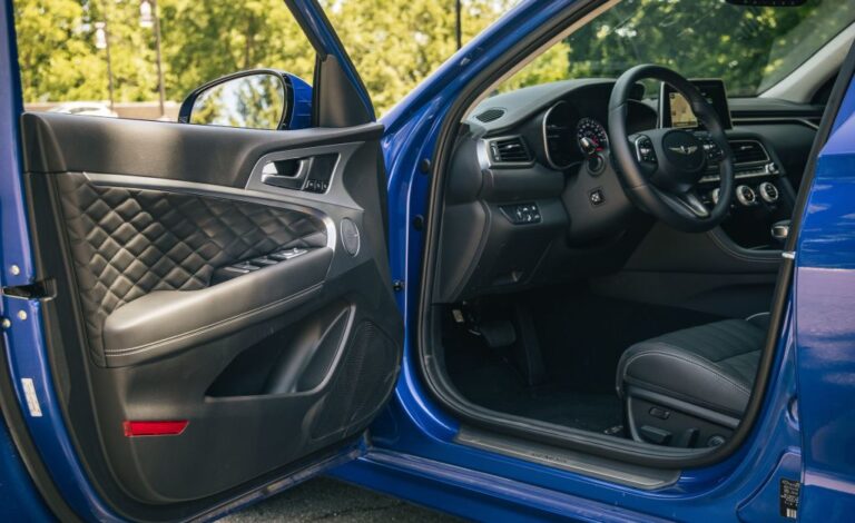 Projektanci Genesis użyli wysokiej jakości materiałów, w tym aluminiowych uchwytów drzwiowych, pikowanych skórzanych paneli drzwiowych, metalowych siatek głośników oraz wysokiej jakości powierzchni o miękkim dotyku. Fotele z skóry Nappa dodatkowo wzbogacają dynamiczne, eleganckie wnętrze.