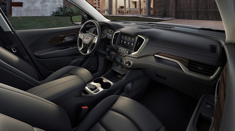 Terrain Denali wzbogaca doświadczenie GMC w nowym wnętrzu o unikalny kolor wykończenia i logotypy oraz wykończenia specyficzne dla Denali na przednich fotelach. Klienci Denali skorzystają z dodatkowych standardowych funkcji, w tym podgrzewanej kierownicy, nawigacji, systemu audio Bose premium z 7 głośnikami oraz bezprzewodowej programowalnej klapy bagażnika.