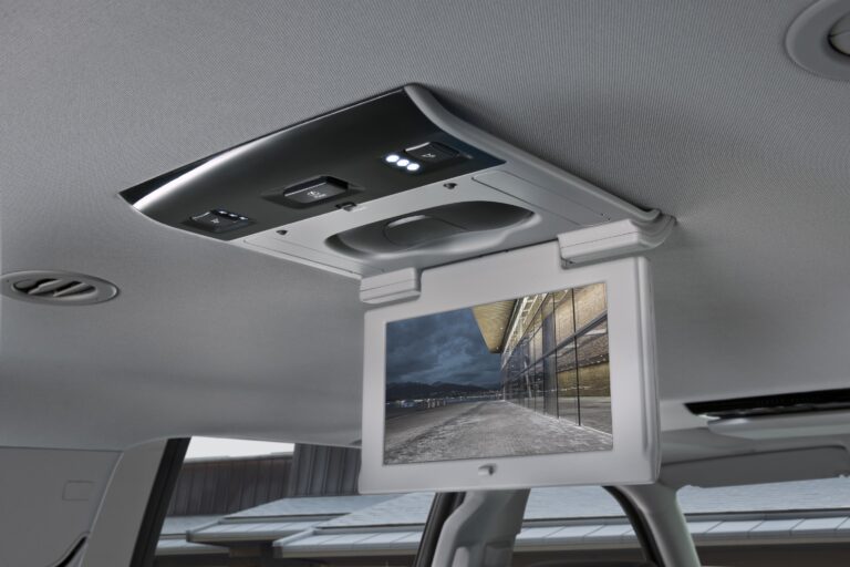 - Dostępny system rozrywki dla pasażerów tylnych z podwójnymi ekranami w Yukonie XL