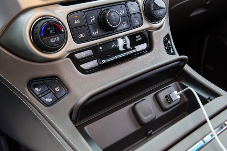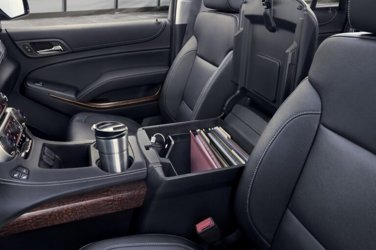 W nowej linii Yukon dostępnych jest więcej opcji przechowywania, w tym pojemna konsola centralna, która wystarczająco pomieści laptopa lub iPada oraz ma miejsce na teczki i inne funkcje organizacyjne, zwłaszcza dla klientów, których pojazd służy również jako mobilne biuro.