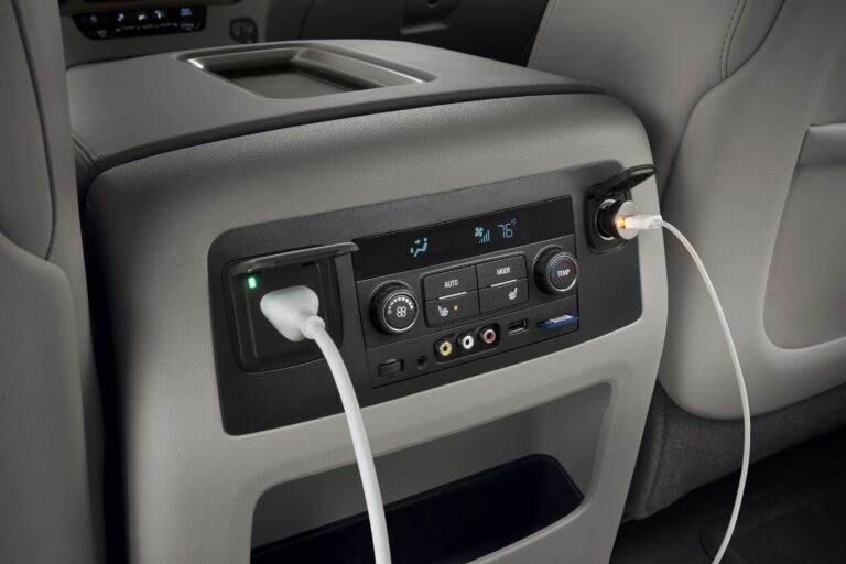 - Wiele portów USB, slotów na karty SD oraz gniazd zasilania akcesoriów – w tym 110-woltowe gniazdo z trzema bolcami – do obsługi wszelkiego rodzaju urządzeń elektronicznych