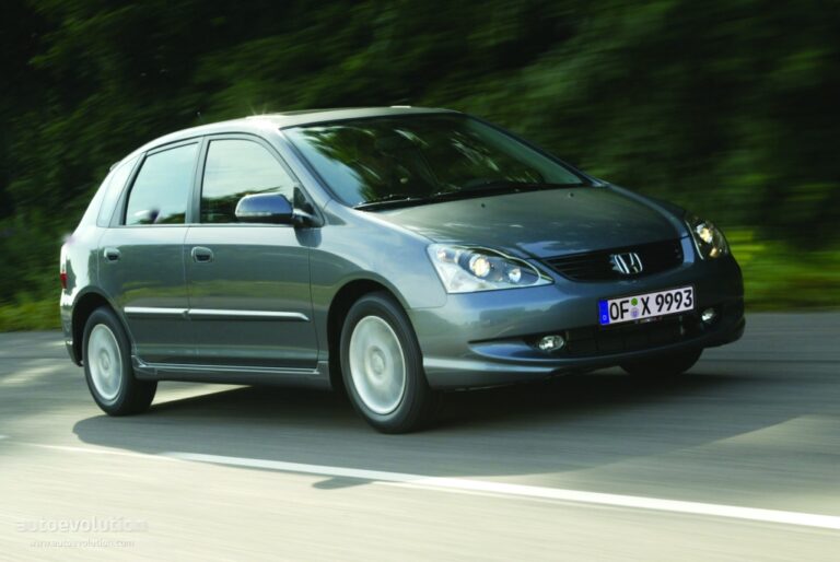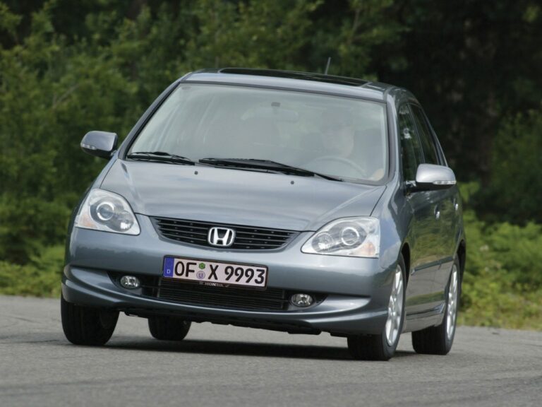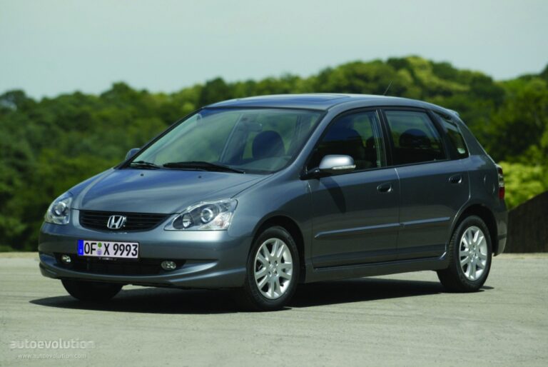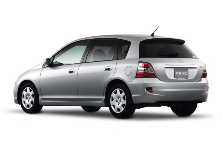 Wygięte, trójkątne reflektory były pochylone w stronę maski i błotników. Grill był większy niż ten w sedanach, a nachylona szyba czołowa znacznie różniła się od reszty modeli. Wysoka linia dachu sprawiała, że auto przypominało bardziej MPV niż typowy hatchback. Za słupkiem C zamontowano trzecie okno boczne, jak w kombi. Mimo to, była to po prostu duża wersja hatchbacka. Podobnie jak w większości zmodernizowanych wersji, 5-drzwiowy Civic z 2003 roku miał inny zestaw tylnych świateł niż wersja przed liftingiem.