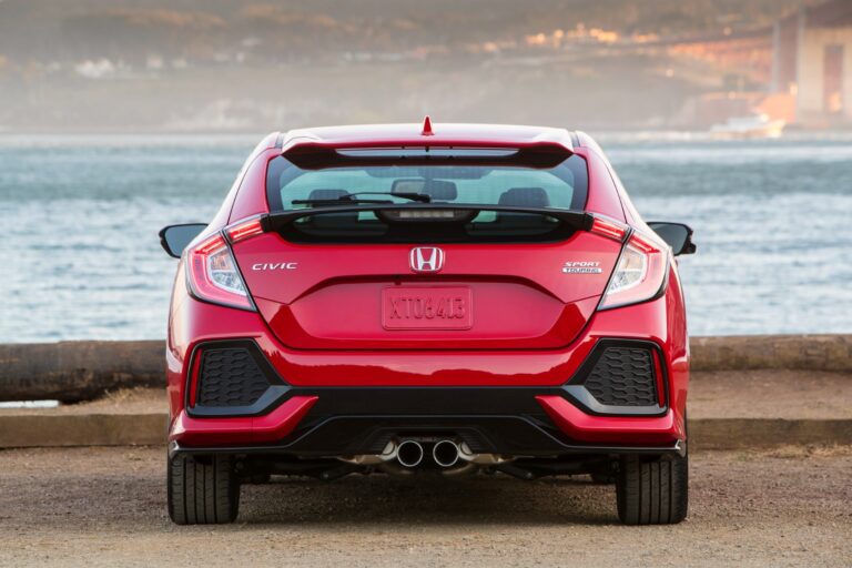 Z tyłu, Civic Hatchback używa własnej interpretacji charakterystycznych dla Hondy diodowych „światłowodowych” tylnych świateł, dużej tylnej szyby osadzonej na równi oraz spojlera aerodynamicznego umieszczonego tuż nad szybą. W wersji Sport Touring dodatkowy spojler tylni znajduje się tuż nad klapą bagażnika. Elementem najbardziej charakterystycznym dla inspirowanego europejskim stylem Civica Hatchback jest duża klapa bagażnika, która pozwala na łatwe załadunek rowerów, plecaków, sprzętu sportowego i kempingowego, elektroniki, sprzętu muzycznego, a nawet niektórych urządzeń.