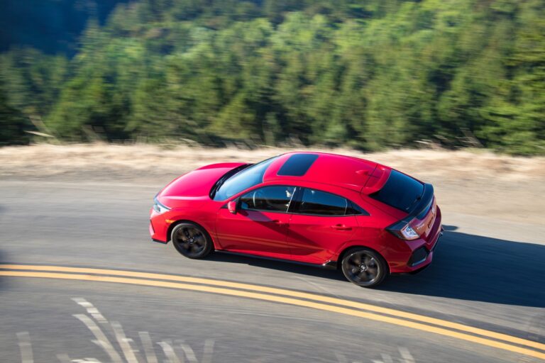 Civic Hatchback 2017 dzieli rozstaw osi wynoszący 106,3 cala z Civic Sedan, co zapewnia doskonały komfort jazdy, znakomitą przestronność drugiego rzędu i łatwe wsiadanie i wysiadanie. Krótszy zwis tylny w porównaniu do Sedana zmniejsza ogólną długość o 4,4 cala (177,9 cala w porównaniu do 182,3 cala, odpowiednio), co dodaje sportowego wyglądu Hondzie Civic Hatchback. Nieco większa wysokość całkowita w porównaniu do Civica Sedana (o 0,8 cala dla wersji Hatchback LX, EX i EX-L Navi oraz o 0,6 cala dla Sport i Sport Touring) przyczynia się zarówno do przestronności wnętrza, jak i pojemności bagażowej. Jak w Civicu Sedan i Coupe, płaskie osłony dolne i rozbudowana aerodynamika pomagają minimalizować opór powietrza i maksymalizować oszczędność paliwa.