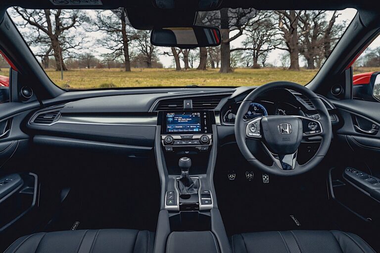 Z objętością kabiny pasażerskiej wynoszącą 97,2 stopy sześcienne, Civic Hatchback oferuje hojne miejsce i komfort. Najlepsza w klasie widoczność do przodu wynosząca 84,3 stopnia wspierana jest przez ultracienkie słupki A, a pasażerowie tylnej kanapy docenią przednie siedzenia z wąskim górnym profilem (w strefie ramion) oraz kompaktowe zagłówki, które nadają tylnej przestrzeni bardziej otwarty, przewiewny charakter.