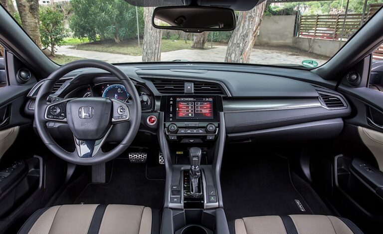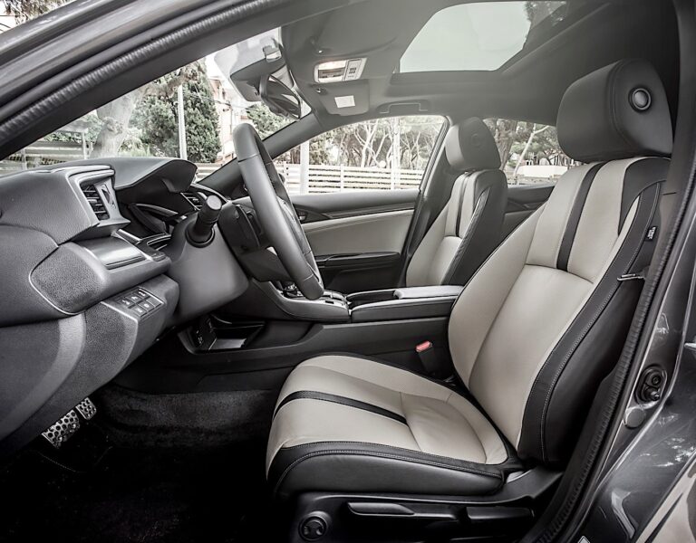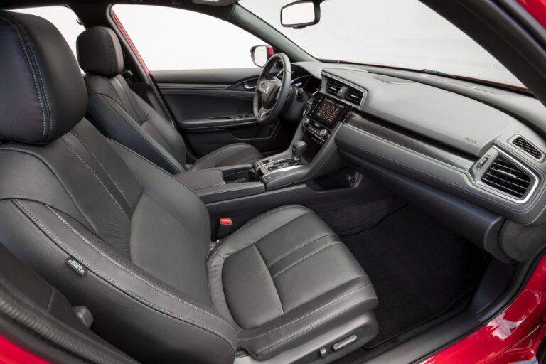 Wnętrze Hondy Civic Hatchback 2017 odzwierciedla nowoczesną, wyrafinowaną jakość dziesiątej generacji Civica, z materiałami i wykończeniami wysokiej jakości. Jeśli chodzi o przestronność, Civic Hatchback 2017 oferuje klasycznie najlepszą objętość i pojemność bagażową, w tym przestronne wnętrze (97,2 stóp sześciennych), największą w klasie przestrzeń na nogi na tylnej kanapie (36,0 cali) oraz największą pojemność bagażową przy złożonych tylnych siedzeniach (25,7 stóp sześciennych w wersjach nie-Sport).
