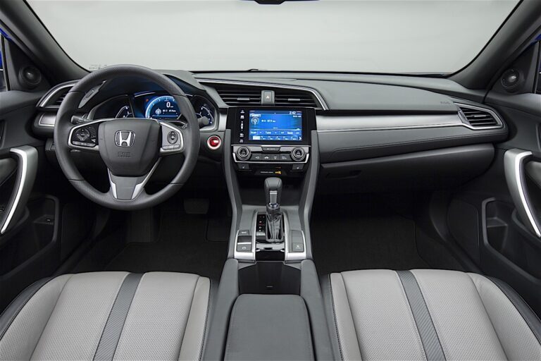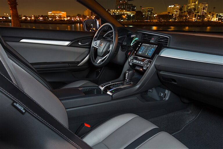 Nowe wnętrze Honda Civic Coupe wznosi wyrafinowanie najtańszego coupe Hondy na nowy poziom z wysokiej jakości elementami i eleganckimi materiałami zastosowanymi w całym wnętrzu. Cechy wyróżniające obejmują miękką powierzchnię górną panelu instrumentów, szwy na poduszkach drzwi oraz miękkie górne panele drzwi. Dopasowanie, wykończenie i materiały zostały starannie dopracowane, a miękka tapicerka skórzana jest standardem w wersjach EX-L i Touring.