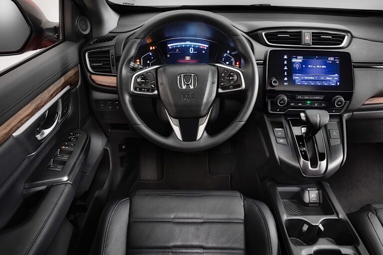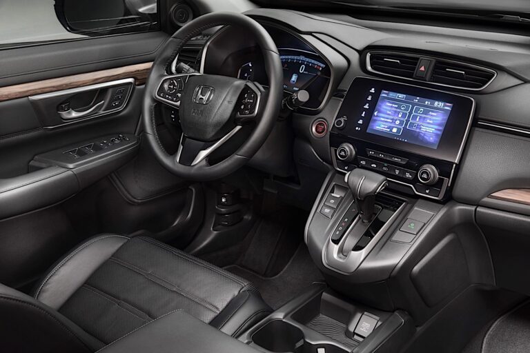 CR-V z 2017 roku podnosi poprzeczkę dla wykończenia wnętrza, użyteczności i premium funkcji w klasie kompaktowych SUV-ów. Bardziej przestronna kabina korzysta z znacznie ulepszonych materiałów, w tym nowej miękkiej deski rozdzielczej i bardziej skomplikowanie haftowanych siedzeń. Nowy wyświetlacz TFT z kolorowym interfejsem dla kierowcy (DII) dodaje elegancji nowemu wzornictwu.