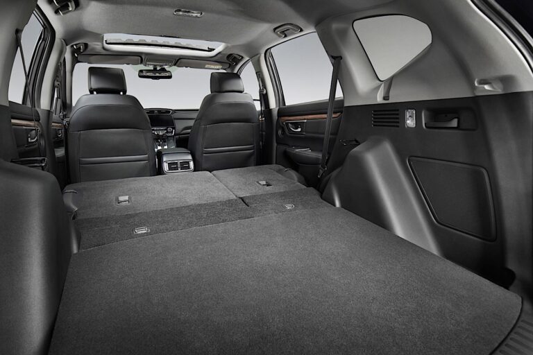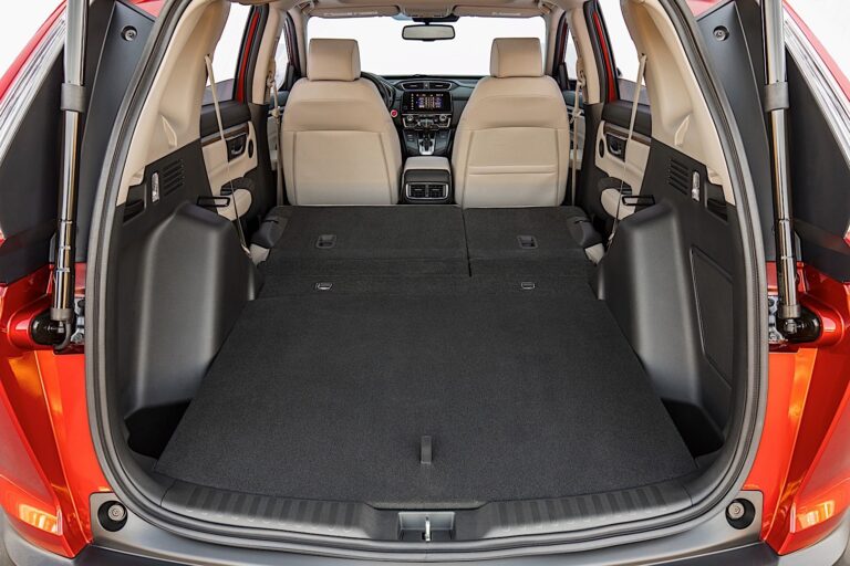 CR-V z 2017 roku ma szeroki i głęboki bagażnik oferujący 39.2 stopy sześcienne (37.6 stopy sześcienne dla wersji Touring) po uniesieniu tylnych siedzeń (2 stopy sześcienne więcej niż w CR-V z 2016 roku) oraz 75.8 stopy sześcienne po złożeniu siedzeń (4.9 stopy sześcienne więcej niż w CR-V z 2016 roku). To umiejscawia nowego CR-V blisko szczytu konkurencji pod względem całkowitej objętości bagażnika. Po złożeniu tylnych siedzeń, obszar ładunkowy jest również o 9.8 cala dłuższy niż w CR-V z 2016 roku. Dodatkowo, funkcja składania tylnego siedzenia jednym ruchem ułatwia przekształcenie CR-V z trybu pasażerskiego na transportowy.