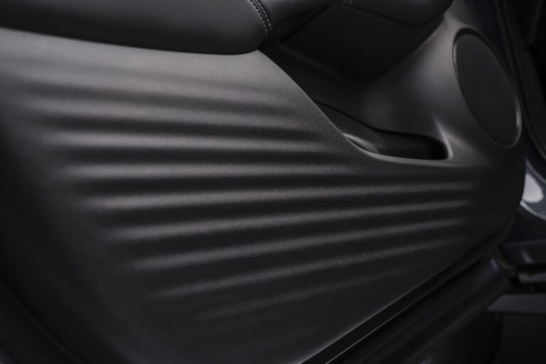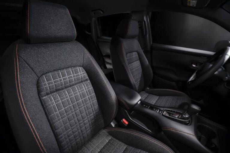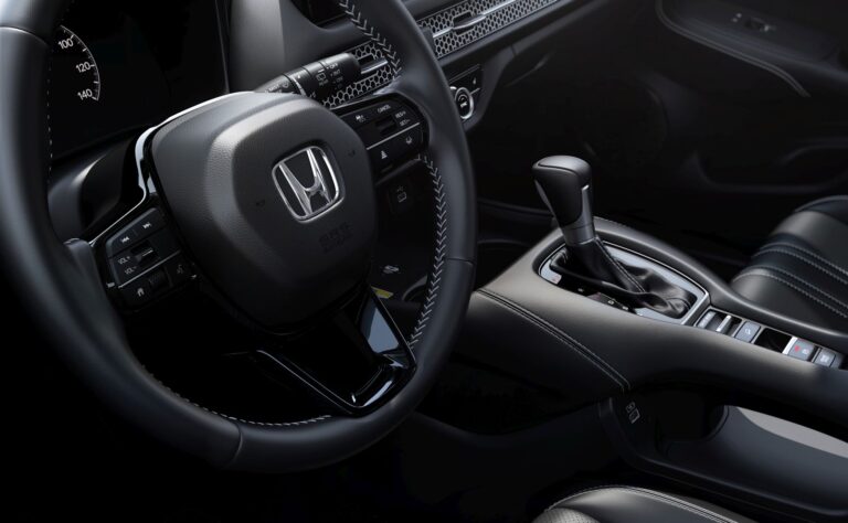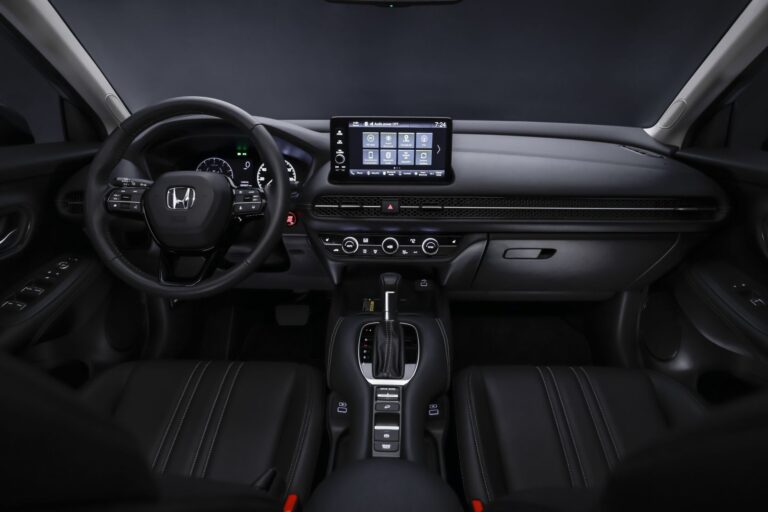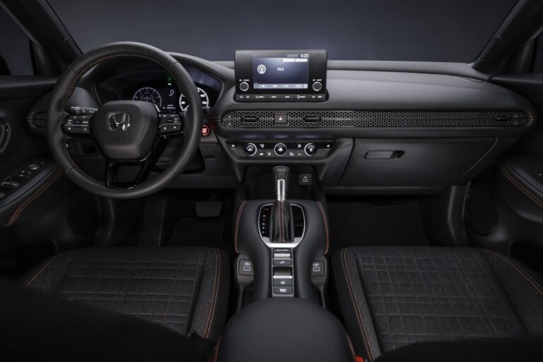 Dodatkowo poprawiając widoczność, górna część szerokiego panelu instrumentów HR-V została zaprojektowana z minimalnymi liniami cięcia, aby zredukować odbicia w szybie i wizualne rozpr distraction. Uderzająca metalowa siatka przypominająca plaster miodu rozciąga się od drzwi do drzwi wzdłuż deski rozdzielczej. Służy zarówno formie, jak i funkcji, tworząc dramatyczną linię dzielącą między wyświetlaczami audio, informacyjnymi i kontrolkami klimatyzacji, a skomplikowany projekt tworzy ukryte otwory wentylacyjne, które mogłyby zakłócić uporządkowany i harmonijny wygląd deski rozdzielczej.