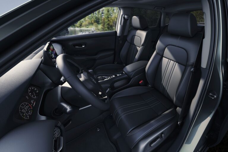 Czyste i sportowe wnętrze Hondy HR-V to świeże podejście do nowego kierunku projektowania „prostota i coś więcej”, wprowadzonego z modelem Civica 2022. Widoczność na zewnątrz poprawia niski pas czołowy HR-V, rozległe przeszklone powierzchnie oraz zewnętrzne lusterka, które zostały umieszczone z dala od słupków szyby przedniej.