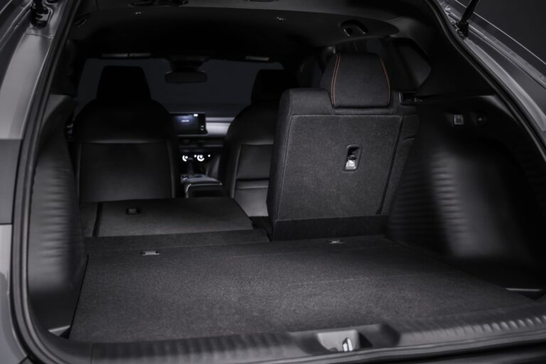 Standardowa przestrzeń bagażowa HR-V (za tylnymi siedzeniami) została powiększona do 24,4 cu.-ft. (wszystkie wersje), a niski wysoki przeładunek wynoszący nieco ponad 27 cali ułatwia załadunek dużych lub ciężkich przedmiotów. Standardowe siedzenia tylne dzielące się w proporcjach 60/40 łatwo składają się do płaskiej podłogi, zwiększając przestrzeń do 55,1 cu.-ft. Dolne panele drzwi i panele boczne przestrzeni bagażowej zaprojektowano z atrakcyjnym falistym wzorem, który lepiej ukrywa zarysowania i zadrapania.