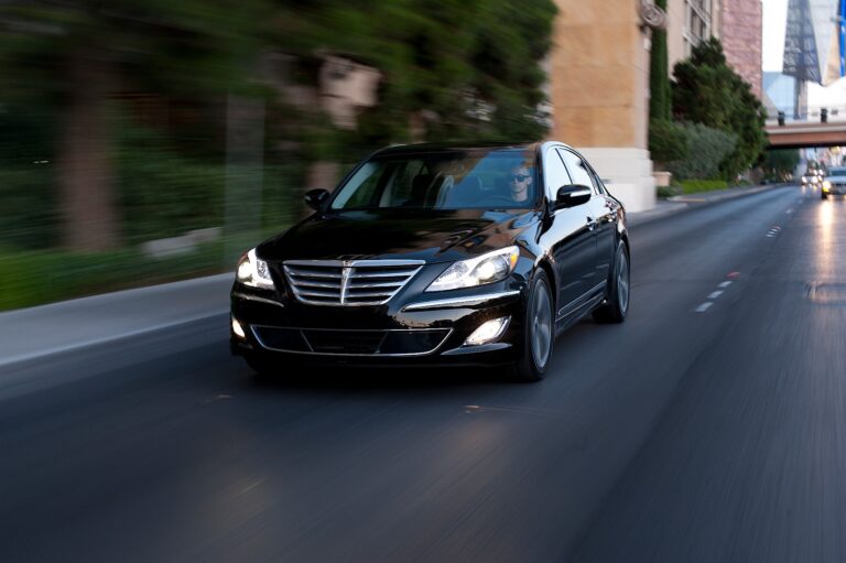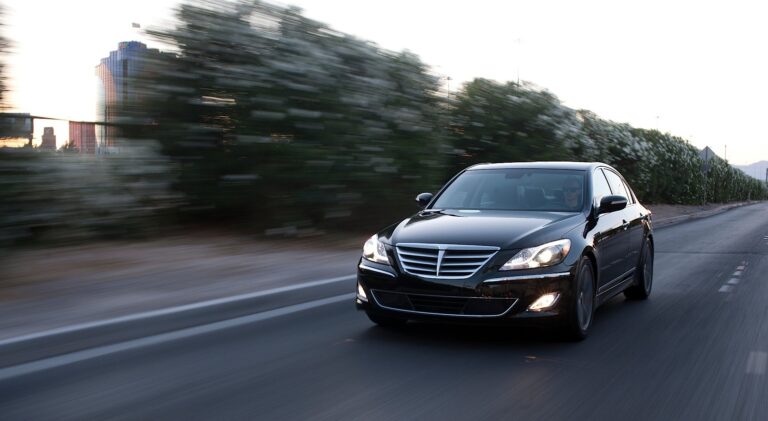 Radar w systemie Smart Cruise Control w Genesisie monitoruje odległość do pojazdu z przodu w tym samym pasie i dostosowuje prędkość.