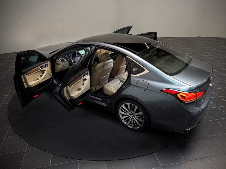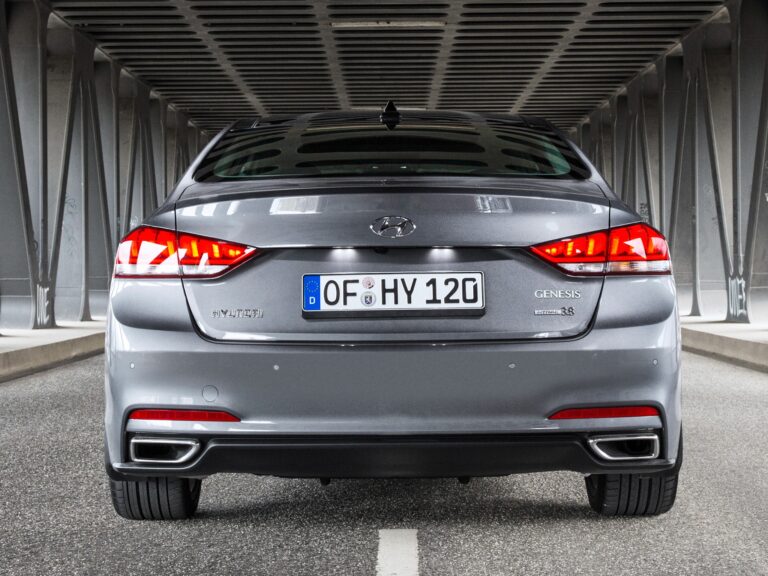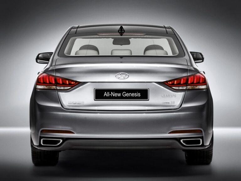 Kratka 3D w kształcie sześciokąta jednolitego zapewnia, że przód zupełnie nowego Genesis nie tylko przyciąga wzrok, przedstawiony w półmatowym chromie, ale także obejmuje dostępne reflektory HID, LED sygnalizatory oraz lampy przeciwmgielne. Z boku, otwarcie na światło dzienne Genesis jest bardziej ekspresyjne, z płynnymi liniami i połączonymi powierzchniami, a smukły słupek C podkreśla sportowy charakter stylizacji. Tył zupełnie nowego Hyundaia Genesis korzysta z rzeźbiarskiej estetyki z kryształowymi, pełnymi lampami tylnymi LED.