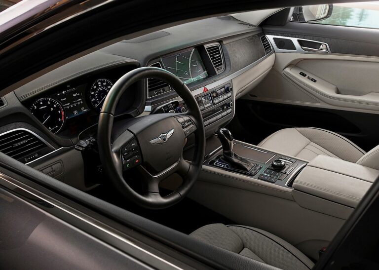 Układ kabiny zupełnie nowego Genesis został zaprojektowany z myślą o komforcie wszystkich pasażerów, zapewniając przestronną i wygodną atmosferę. Uproszczenie układu przełączników oraz deski rozdzielczej gwarantuje intuicyjny układ oraz otwarte odczucie. Ten skoncentrowany na użytkownikach design stara się efektywnie połączyć różne elementy wnętrza, szczególnie środkową konsolę z górną deską rozdzielczą oraz słupkiem B z podsufitką. Genesis prezentuje ultra-precyzyjne dopasowanie i wykończenie, z ergonomicznym designem siedzeń i hojnym, naturalnym odczuciem. Szczególną uwagę poświęcono przechowywaniu praktycznych przedmiotów, takich jak urządzenia mobilne w różnych kształtach i rozmiarach, oraz elastyczności uchwytów na kubki.