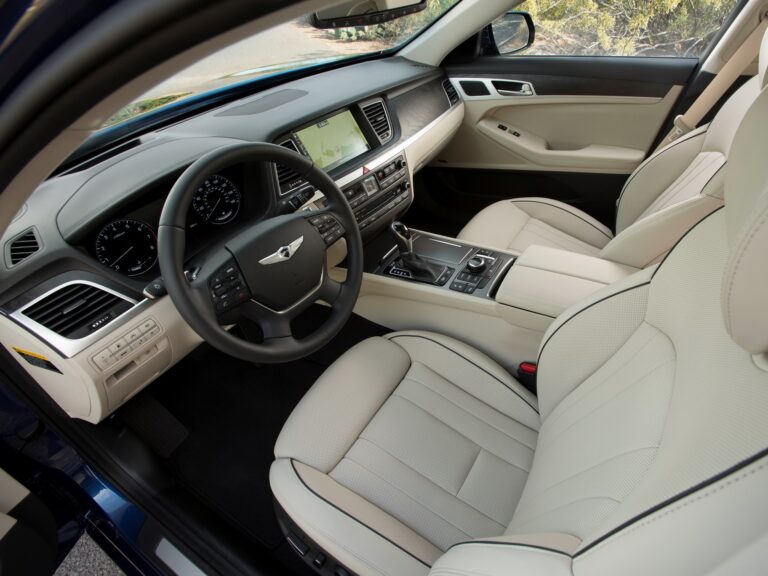 Ułożenie kierowcy i pasażera zostało zoptymalizowane dzięki zwiększonej gęstości poduszek siedzeń, udoskonalonym technologiom wsparcia siedzeń, takim jak regulowane elektryczne wsporniki oraz przedłużenie poduszki siedzenia. Siedzenia Genesis oferują 12-kierunkową regulację elektryczną z przodu, w tym 4-kierunkową regulację lędźwiową, podgrzewane przednie siedzenia z dostępną wentylacją oraz ogrzewane tylne siedzenia. Materiały siedzeń i jakość szwów zostały poprawione dzięki zastosowaniu podwójnych, zamiast pojedynczych szwów. Przeprojektowane siedzenie kierowcy wprowadza nową funkcjonalność, z dostępną nową pompą powietrza i zaworem kontrolnym, co umożliwia regulację wsporników oparcia za pośrednictwem indywidualnych komór powietrznych w siedzeniu. Czas uruchomienia wynosi mniej niż 8 sekund, co daje Genesis zarówno szybszy proces aktywacji, jak i większy zakres regulacji niż wielu konkurencyjnych rywali.