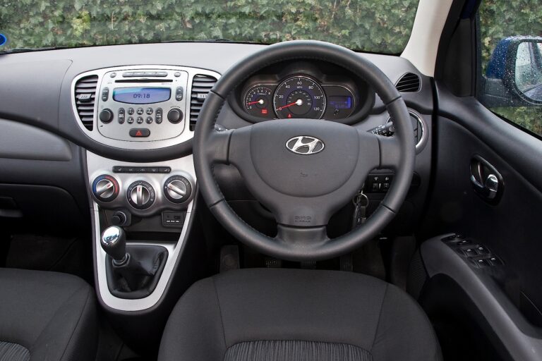 Wnętrze i10 było intuicyjnie zaprojektowane, a wszystkie sterowania były proste w obsłudze. Niestety, kierownica miała niewiele możliwości regulacji.