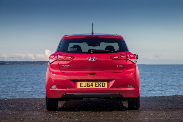 Z tyłu, Nowa Generacja i20 posiada okrążającą, błyszczącą czarną C-słupkę, która stwarza wrażenie unoszącej się linii dachu. Linia cechowa biegnąca wzdłuż pojazdu łączy się z tyłu – subtelnie opadając poniżej tylnej szyby, aby poprawić widoczność.