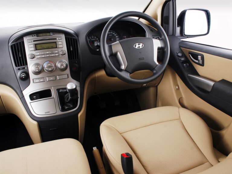 Hyundai i800 wyposażony jest w parę siedzeń z przodu oraz dwie ławki z tyłu, z których każda pomieści trzy dorosłe osoby w komfortowych warunkach, zapewniając odpowiednią przestrzeń na głowę i nogi.