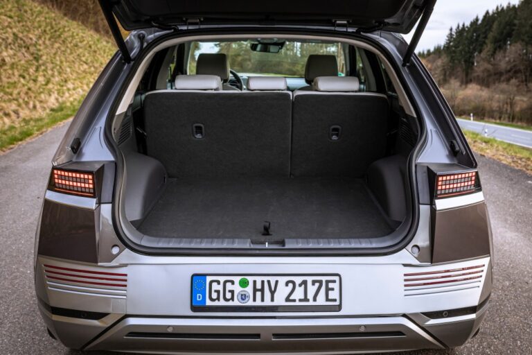 IONIQ 5 oferuje 531 litrów pojemności bagażnika, która zwiększa się do prawie 1600 litrów, gdy siedzenia drugiego rzędu są całkowicie złożone. Dla zwiększonej wszechstronności, siedzenia drugiego rzędu mogą przesuwać się do przodu o maksymalnie 135 mm i również mogą być składane w proporcji 6:4. Tymczasem klienci mogą korzystać z dodatkowej przestrzeni ładunkowej w przednim bagażniku, który oferuje aż 57 litrów pojemności, co jest szczególnie przydatne podczas dłuższych podróży, gdy zabierają ze sobą dodatkowy bagaż.