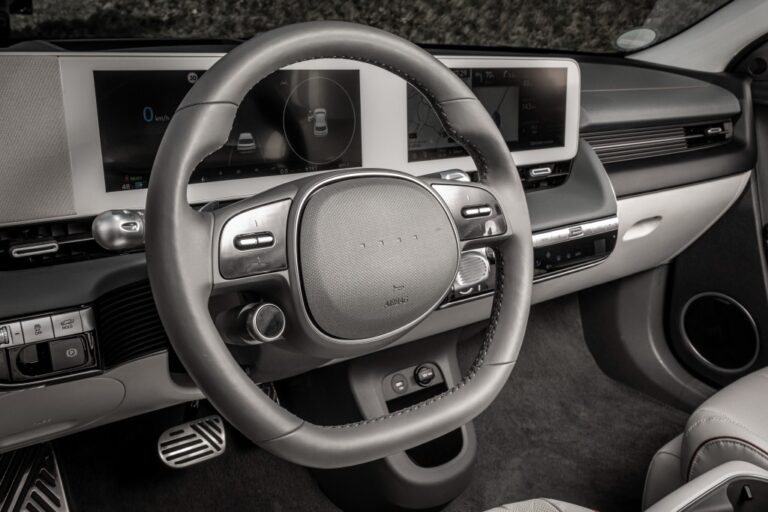 IONIQ 5 wyróżnia się na tle innych średniej wielkości CUV, zwłaszcza tych z silnikami spalinowymi i konwencjonalnymi systemami steer-by-wire, ponieważ E-GMP umożliwia płaską podłogę, w której przechowywane są akumulatory, co pozwala na innowacyjny design wnętrza i dodatkową przestrzeń na nogi.