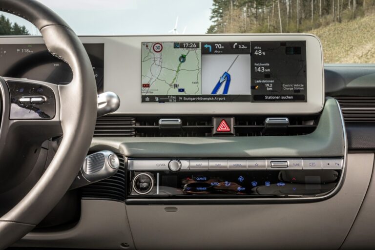Dzięki nowej opartej na chmurze funkcji Connected Routing, trasy jazdy obliczane są na potężnym serwerze w chmurze Bluelink. To zapewnia dokładniejsze prognozowanie ruchu, precyzyjniejsze czasy przyjazdu i niezawodne ponowne obliczanie tras. Dzięki nowemu IONIQ 5 baza danych została zwiększona, aby pokazać więcej stacji ładowania na mapie, uwzględniając dostępność i szacowany czas ładowania. Klikając na ikonę stacji na mapie, użytkownicy mogą zobaczyć, czy dostępne jest ładowanie AC, DC czy o dużej mocy, takie jak IONITY.