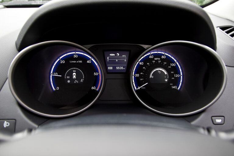 Zestaw wskaźników – z niebieskim podświetleniem – korzysta z technologii Supervision znanej z sedana Genesis, aby wyświetlać kluczowe informacje z krystaliczna przejrzystością i minimalnym obciążeniem dla wzroku.