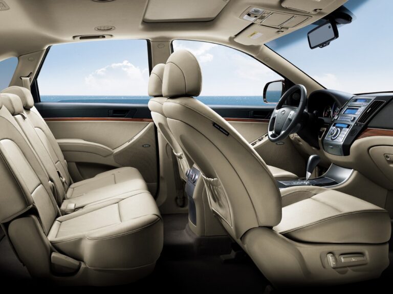 Jak przystało na flagowy model, wnętrze Hyundai ix55 to kwintesencja luksusu. Używając wysokiej jakości drewna i skór, projektanci Hyundai stworzyli przestronną kabinę, która jest zarówno wszechstronna, jak i elegancka. Poziomy wyposażenia są w czołówce klasy i obejmują fotele pokryte zamszem – elektrycznie regulowane dla kierowcy – radio RDS oraz wysokiej jakości system audio Infinity MP3, wielofunkcyjny komputer pokładowy, tylne przyciemniane szyby, podświetlaną niebieską deskę rozdzielczą, dwustrefową klimatyzację z osobnymi sterowaniami dla pasażerów z tyłu, skórzany, w pełni regulowany wielofunkcyjny kołek kierowniczy oraz tempomat. Lista opcji jest równie rozbudowana, dostępna w ramach czterech dodatkowych pakietów wyposażeniowych.