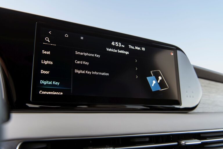 Możliwości ładowania bezprzewodowego zostały ulepszone z 5 watów do 15 watów dla szybszego ładowania urządzeń. Palisade 2023 obsługuje najnowszą wersję Hyundai Digital Key. Digital Key 2 Touch pozwala właścicielom zostawić klucze w domu i używać iPhone’a, Apple Watcha lub smartfona Samsung Galaxy do blokowania, odblokowywania i uruchamiania pojazdu. Po dodaniu klucza do Apple Wallet lub Samsung Pass użytkownicy mogą po prostu przytrzymać obsługiwane urządzenie blisko klamki, aby zablokować lub odblokować samochód. Dotknięcie Apple Watcha lub umieszczenie telefonu w ładowarce bezprzewodowej, a następnie wciśnięcie przycisku startu pozwala kierowcy uruchomić silnik Palisade’a. Apple Wallet lub Samsung Pass umożliwia również bezpieczne dzielenie się kluczami z rodziną i przyjaciółmi. Palisade 2023 to także pierwszy model Hyundaia, który oferuje możliwość hotspotu Wi-Fi. Klienci z łącznością komórkową będą mogli udostępniać hotspot, który umożliwia innym przeglądanie internetu, strumieniowanie filmów lub muzyki i inne – jak w domu.