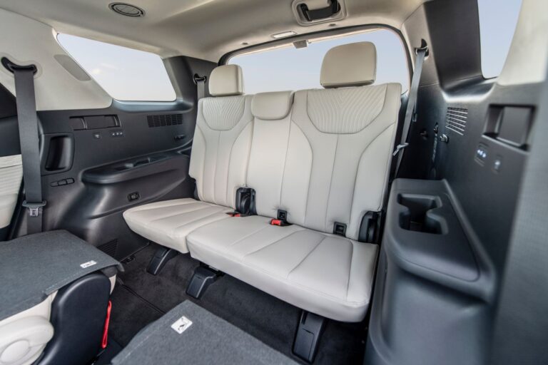 Wnętrze łączy poczucie relaksu i komfortu, tworząc spokojne otoczenie z ośmioosobowym miejscem standardowym na rodzinne przygody. Siedzisko w drugim rzędzie z funkcją One-Touch pozwala na łatwe przesunięcie go do przodu dla wygodnego dostępu do trzeciego rzędu. Dla większej wygody, trzeci rząd oferuje elektrycznie składane i rozkładane oraz rozkładane siedzenia. Dostępne są również fotele kapitańskie w drugim rzędzie. Dodano gniazda USB-C dla szybszego ładowania urządzeń w całym wnętrzu, co zapewnia dodatkową wygodę dla wszystkich pasażerów. Dodatkowo, lustro do rozmów pozwala kierowcy wyraźnie widzieć pasażerów w tyle.